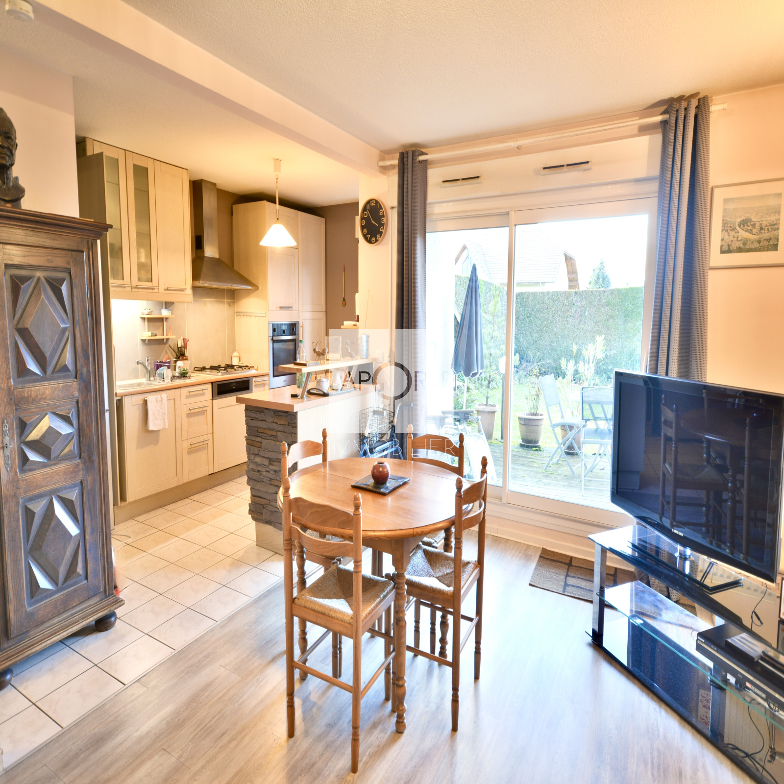 - Salon ouvrant sur le jardin, idéal pour profiter des journées ensoleillées et des soirées tranquilles en plein air.