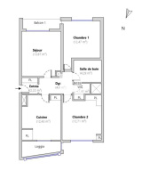 Agencement fonctionnel : entrée, séjour lumineux, cuisine séparée, deux chambres, salle de bains et WC indépendants
