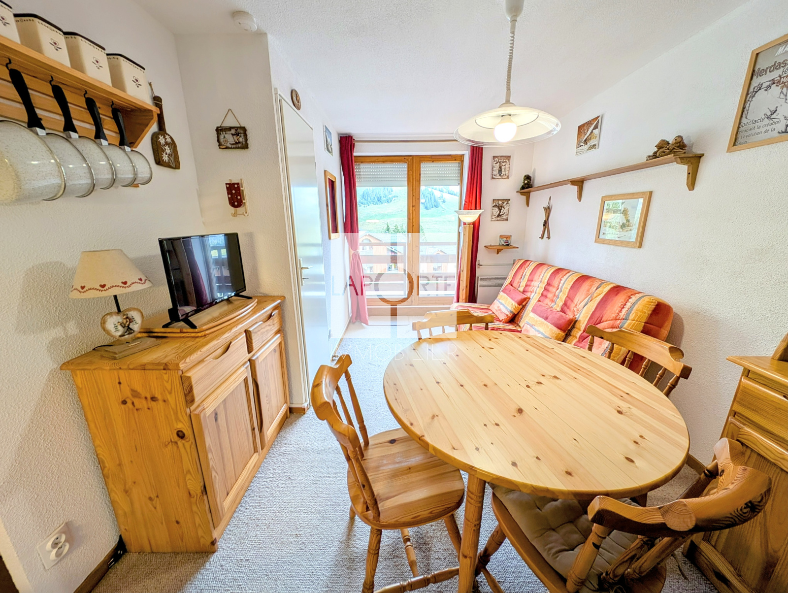 Découvrez cet appartement 2 pièces avec coin cabine de 23m2 Carrez, situé au coeur de la sation de ski de Manigod.