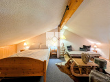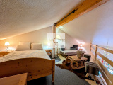 Exposition plein Sud, il bénéficie d'une belle luminosité dans le salon / séjour avec une vue imprenable sur le domaine de ski et les montagnes environnantes Situé au dernier étage de la copropriété et sans vis-à-vis.