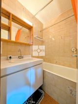 L'appartement se compose d'un séjour / cuisine ouverte équipée avec un accès à une terrasse de 15m2, d'une chambre, d'une chambre cabine, d'une salle de bain, d'un wc séparé et de nombreux placards de rangement.