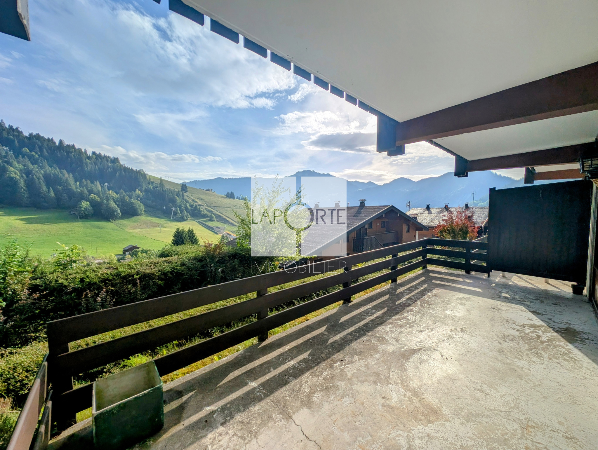 Exposition plein Sud, il bénéficie d'une belle luminosité sur la terrasse avec une vue imprenable sur le domaine de ski, sur le plateau de Beauregard et sur les montagnes environnantes.