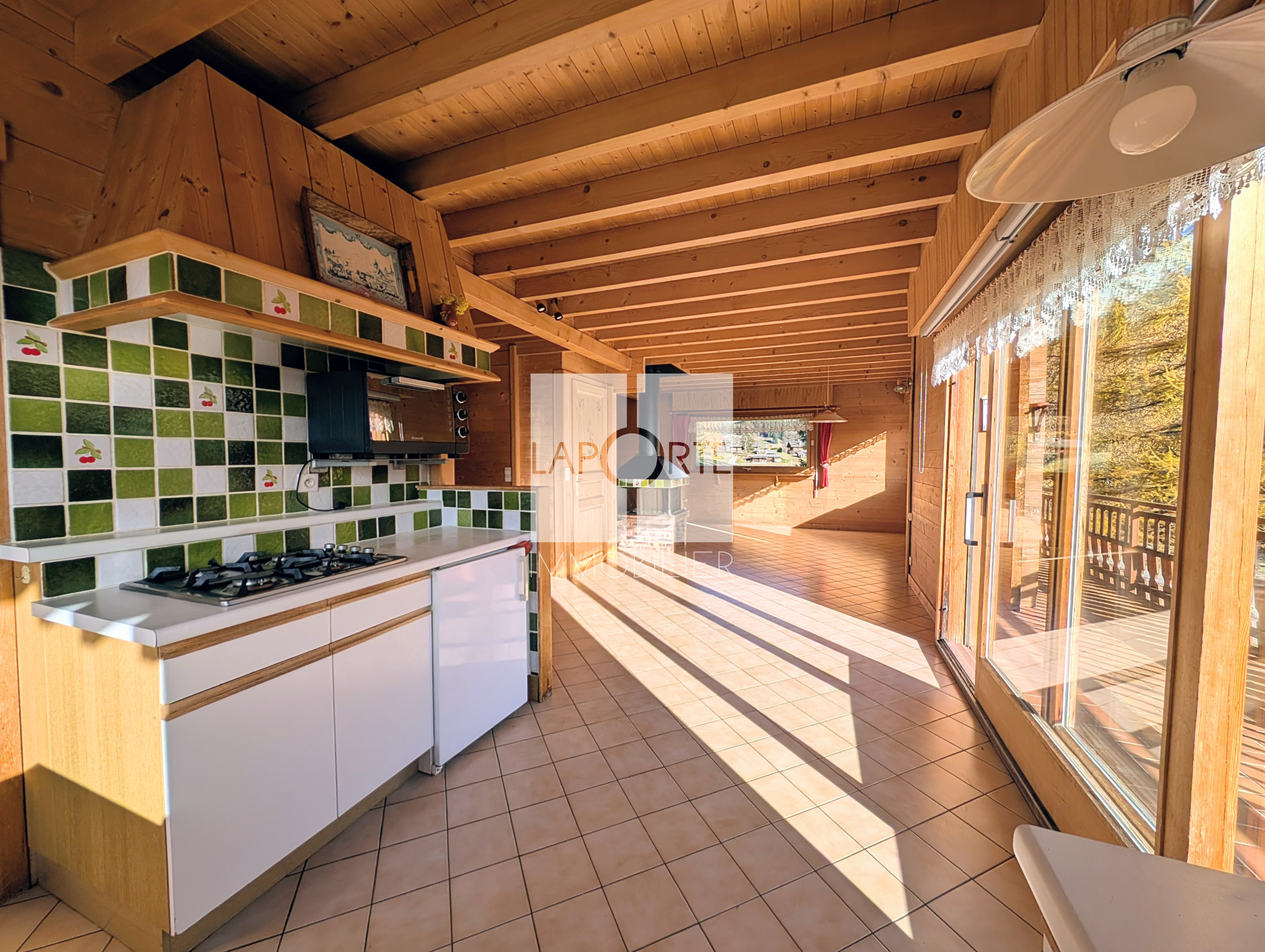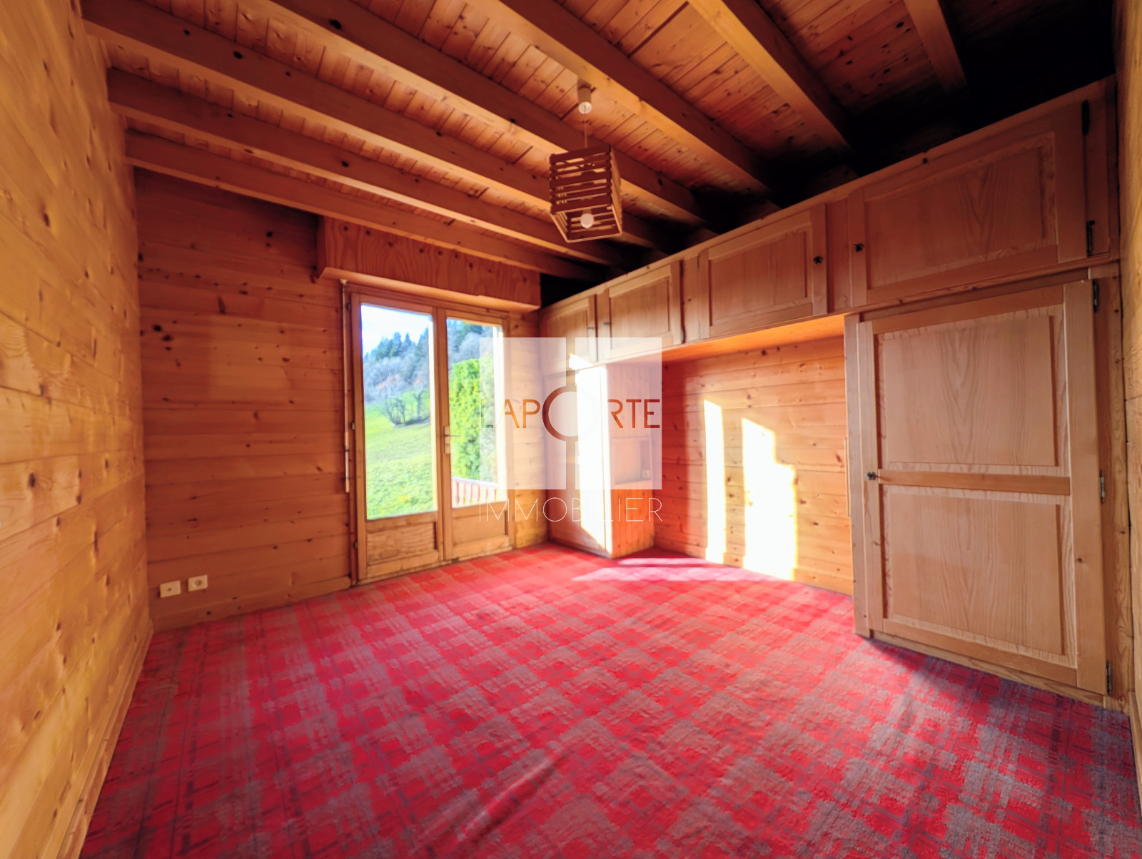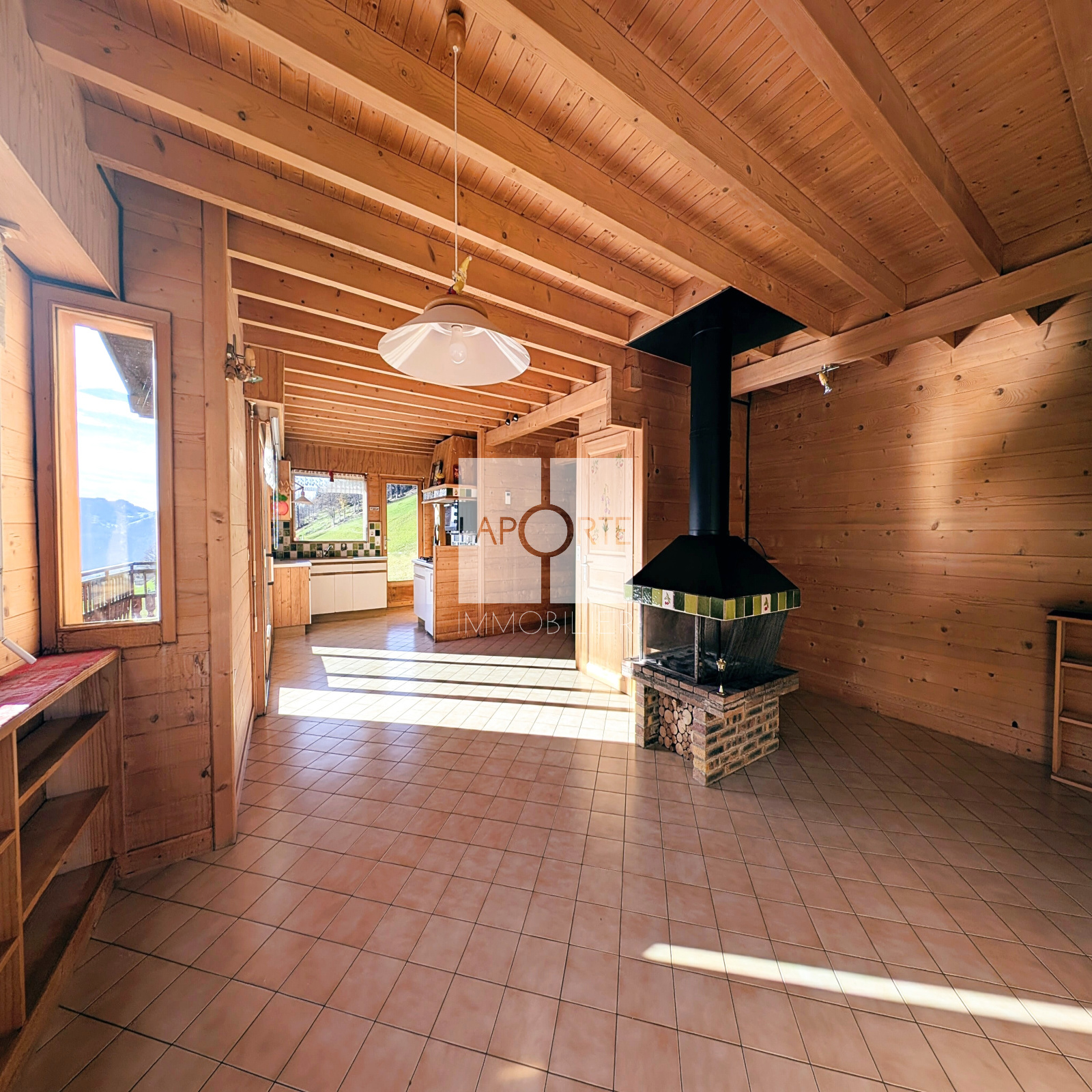L'extérieur du chalet comprend une terrasse, un jardin arboré et l'accès à un terrain agricole d'environ 2500m2.