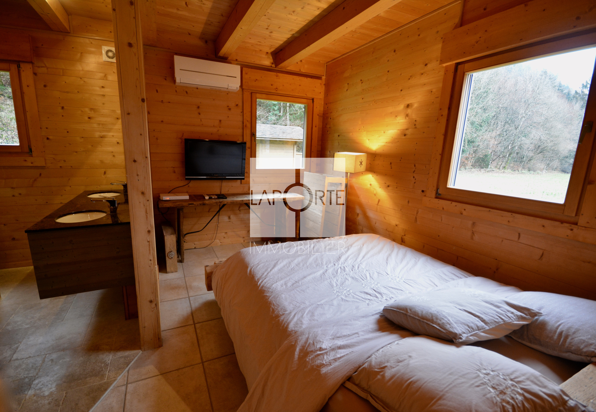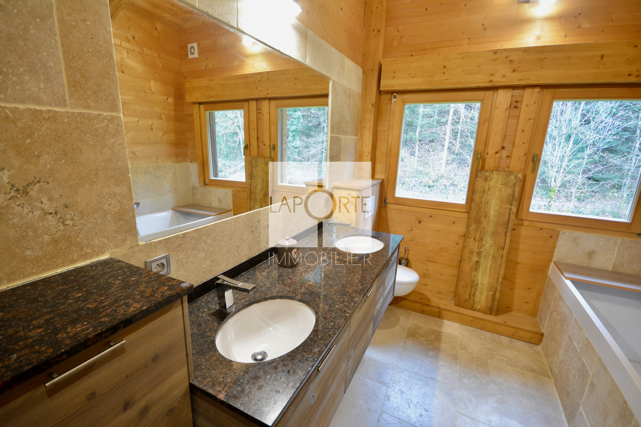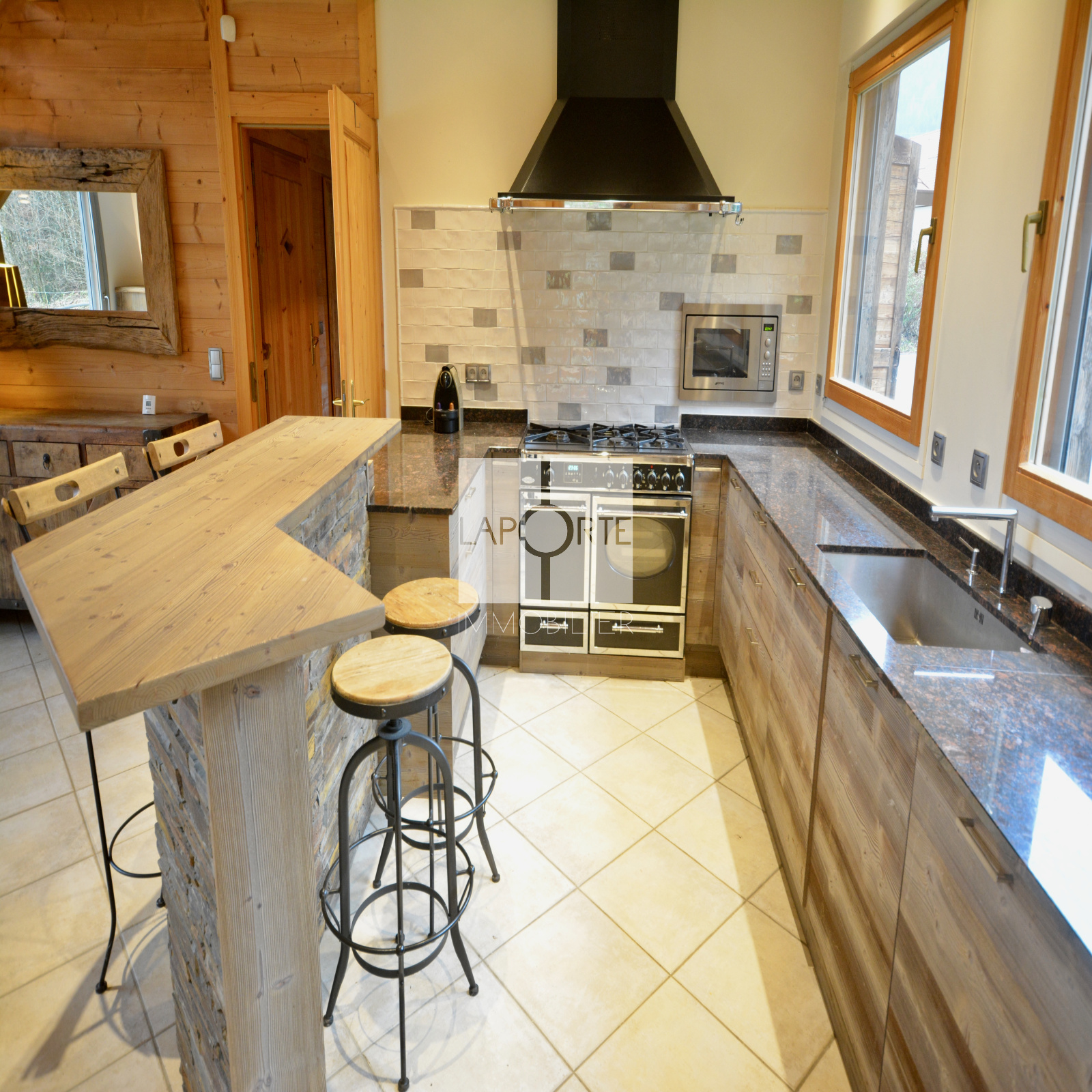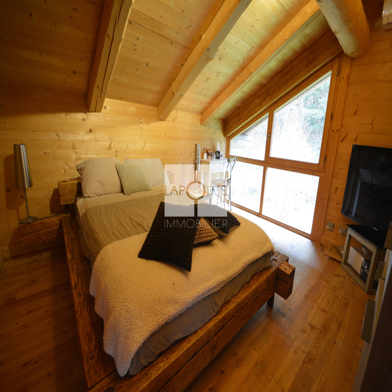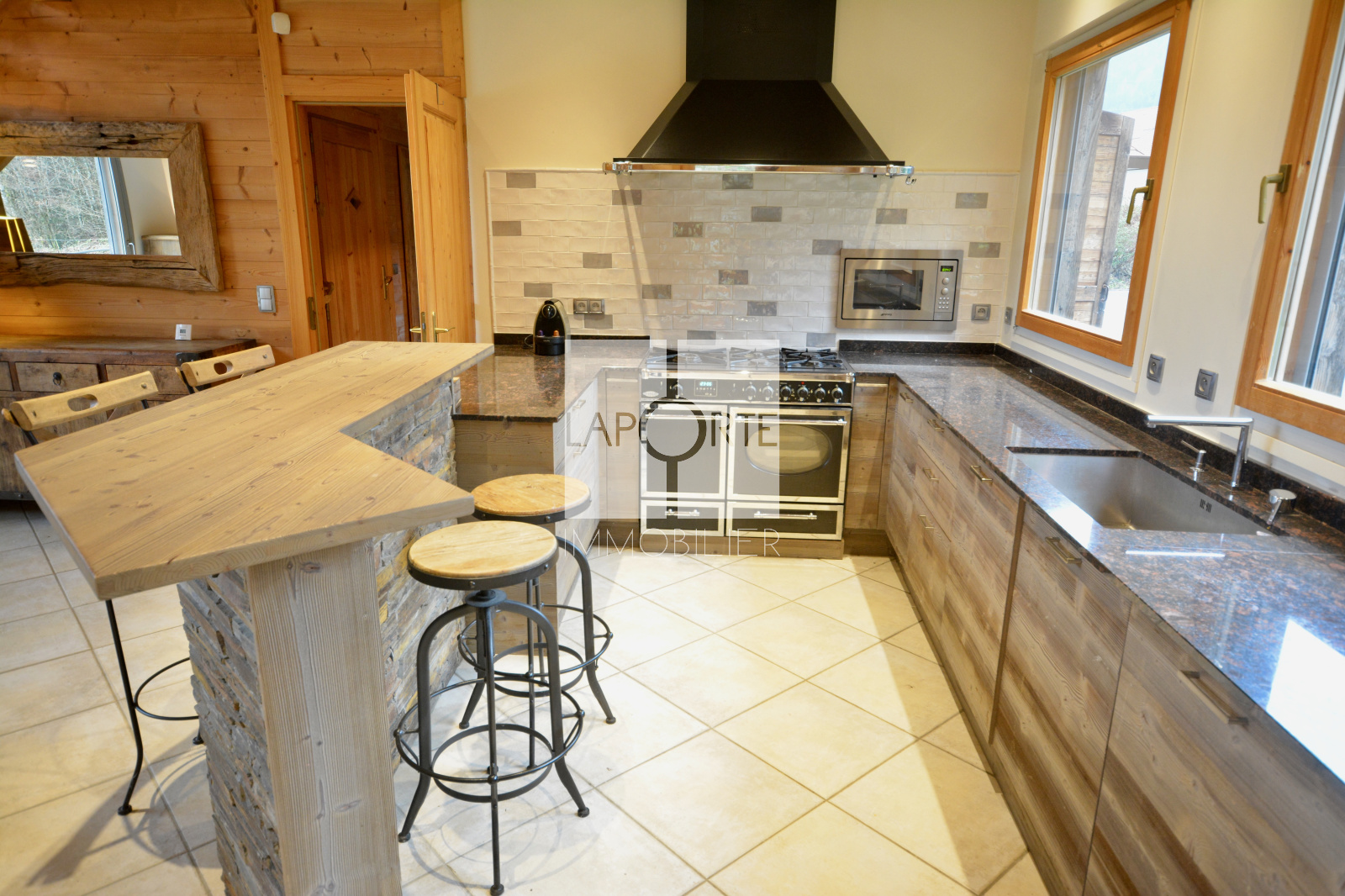 L’alliance harmonieuse de matériaux nobles et de finitions modernes confère à ce chalet une ambiance chaleureuse, élégante et unique.
