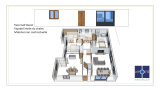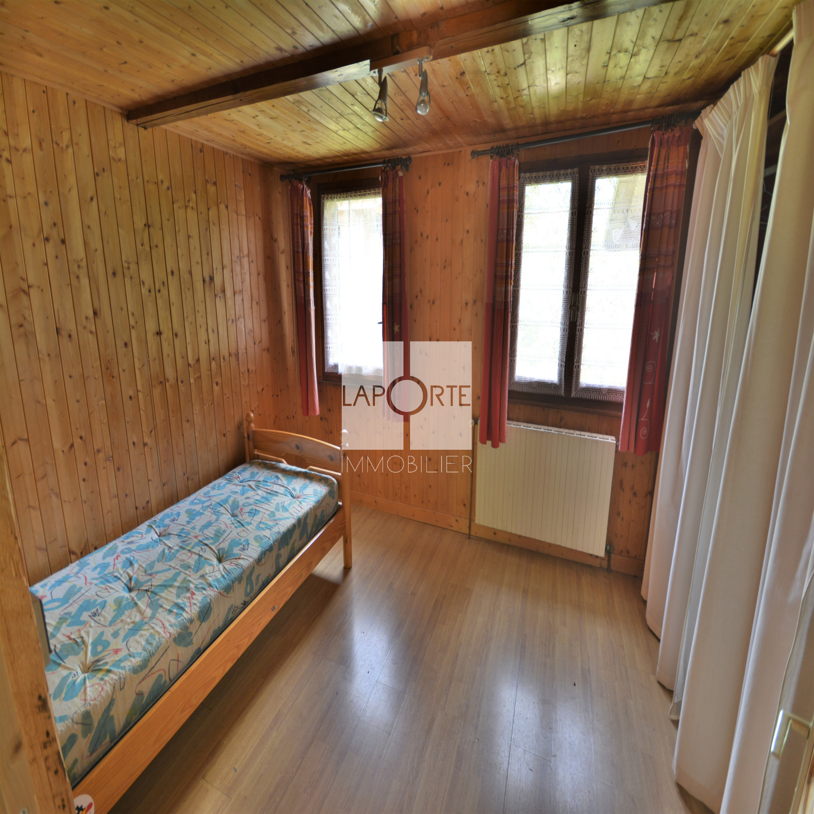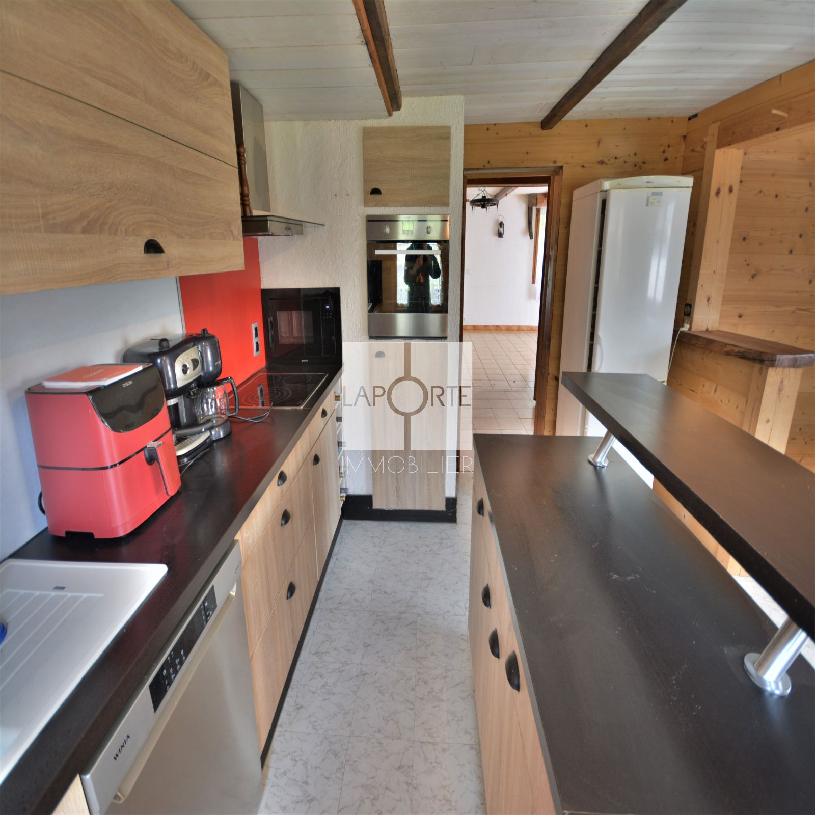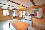 Ce chalet propose un appartement de 136m2 Carrez au premier étage, composé d'un grand salon/séjour, d'une cuisine équipée avec espace repas et une cheminée, 4 chambres dont 2 communicantes, une salle de bain avec une cabine de douche séparé, 2 wc et un balcon.