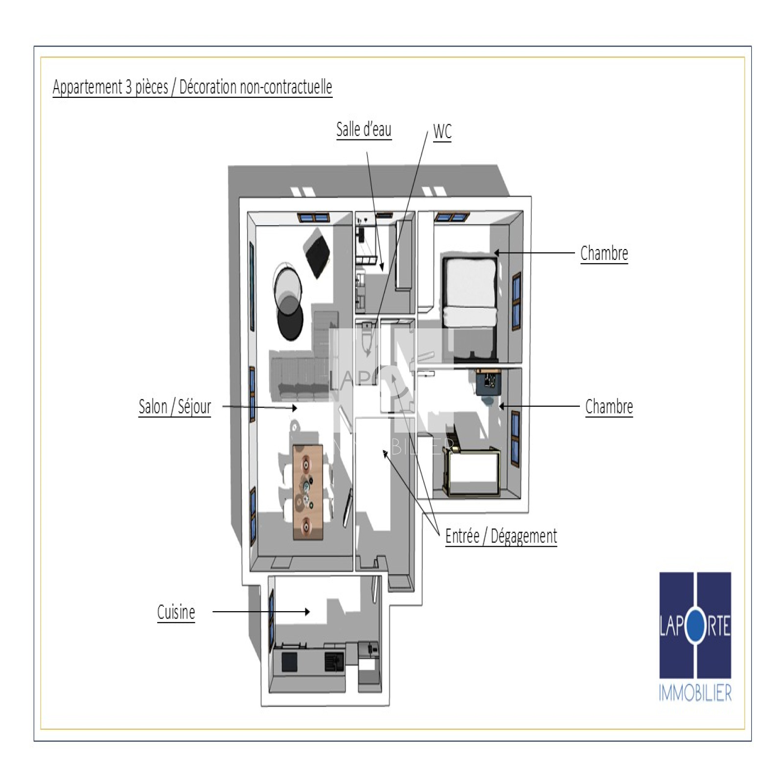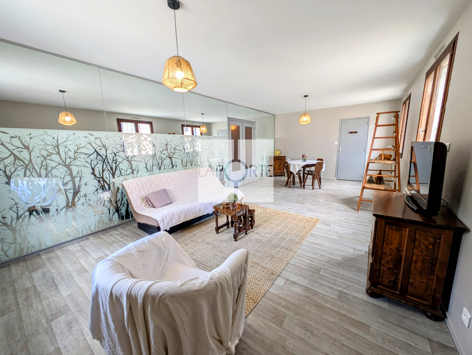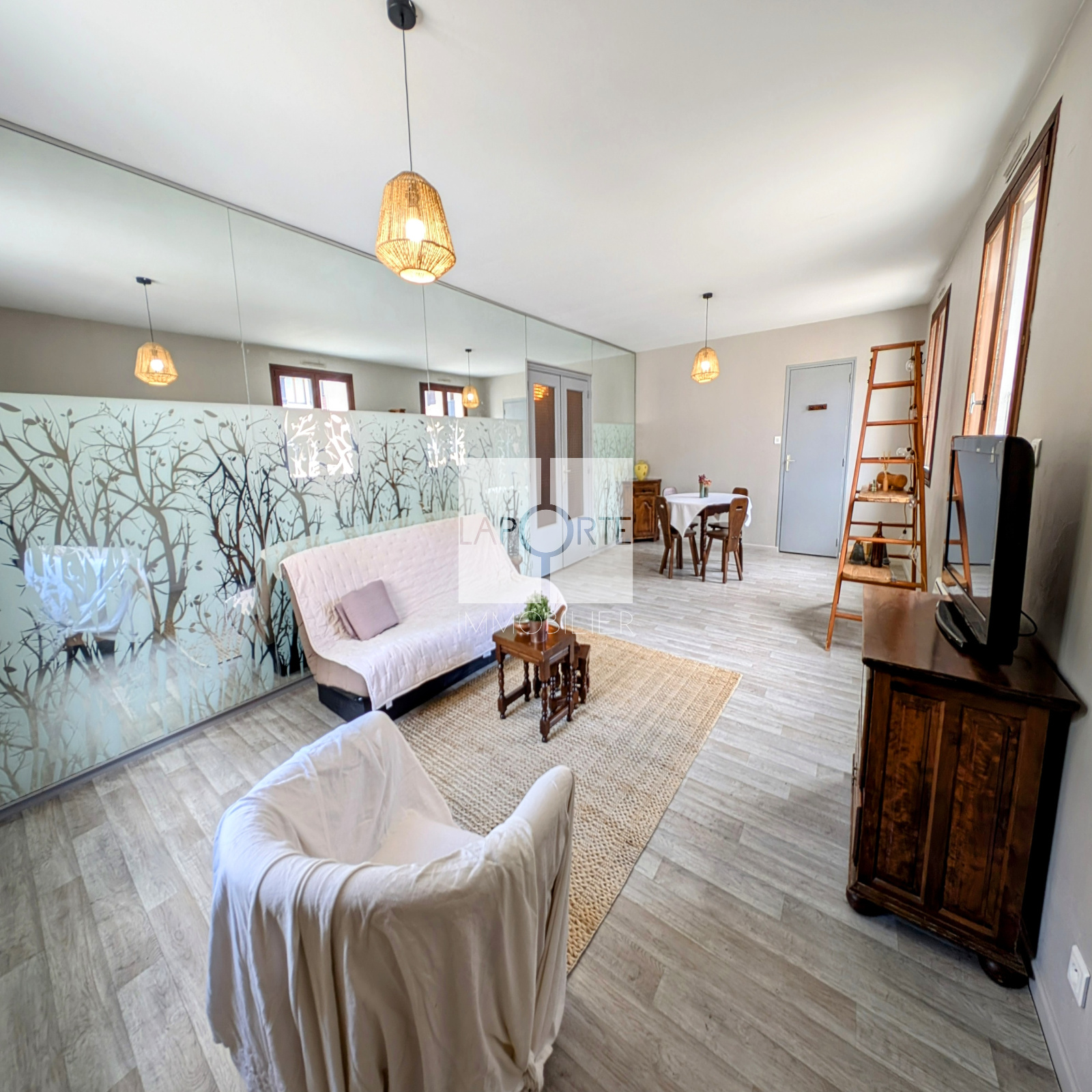 Vous découvrirez un vaste salon / séjour, une cuisine séparée équipée, une entrée avec dégagement, deux chambres, une salle de bain, un wc indépendant.