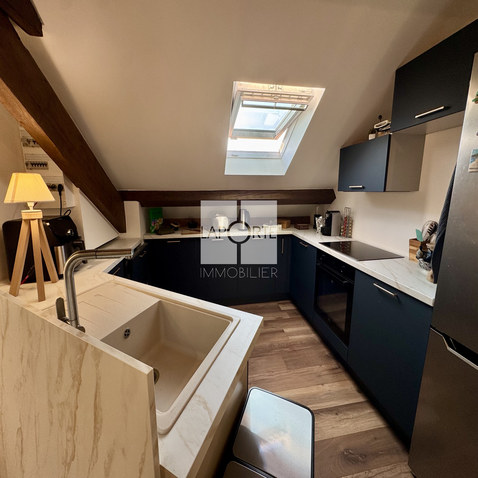 Vous découvrirez au 4ème étage avec ascenseur un salon/séjour avec cuisine ouverte et équipée, une chambre et un bureau pouvant servir de seconde petite chambre et une salle d'eau avec WC.