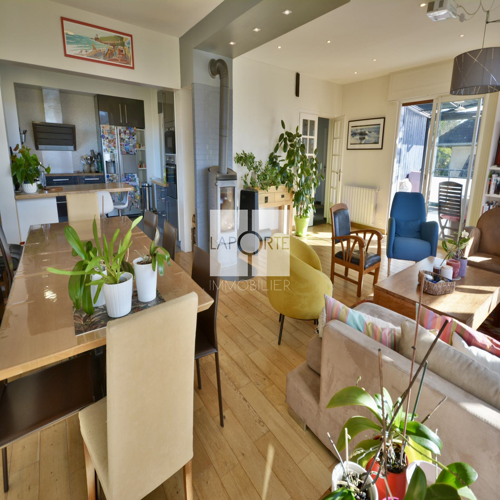 Idéalement située en bout d’impasse, cette maison de presque 300m² habitables (434m² au total) allie confort et volumes généreux dans un cadre paisible et verdoyant.