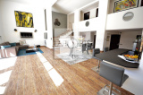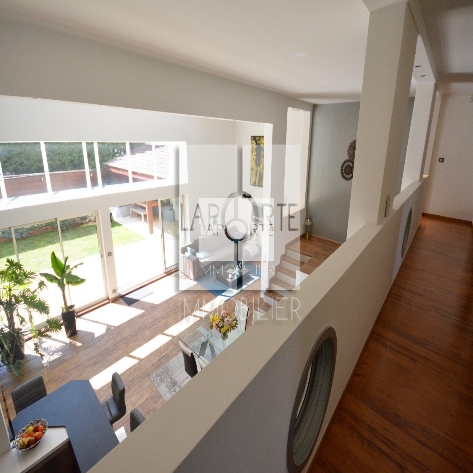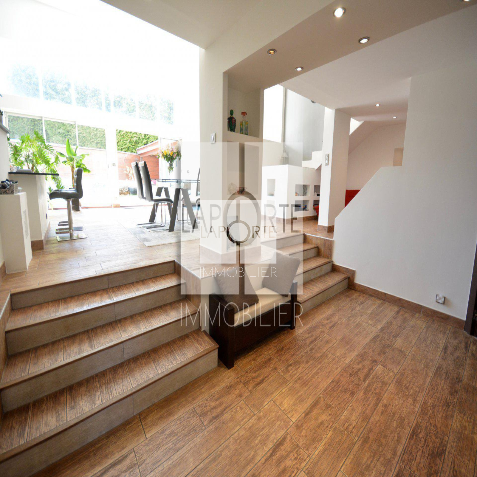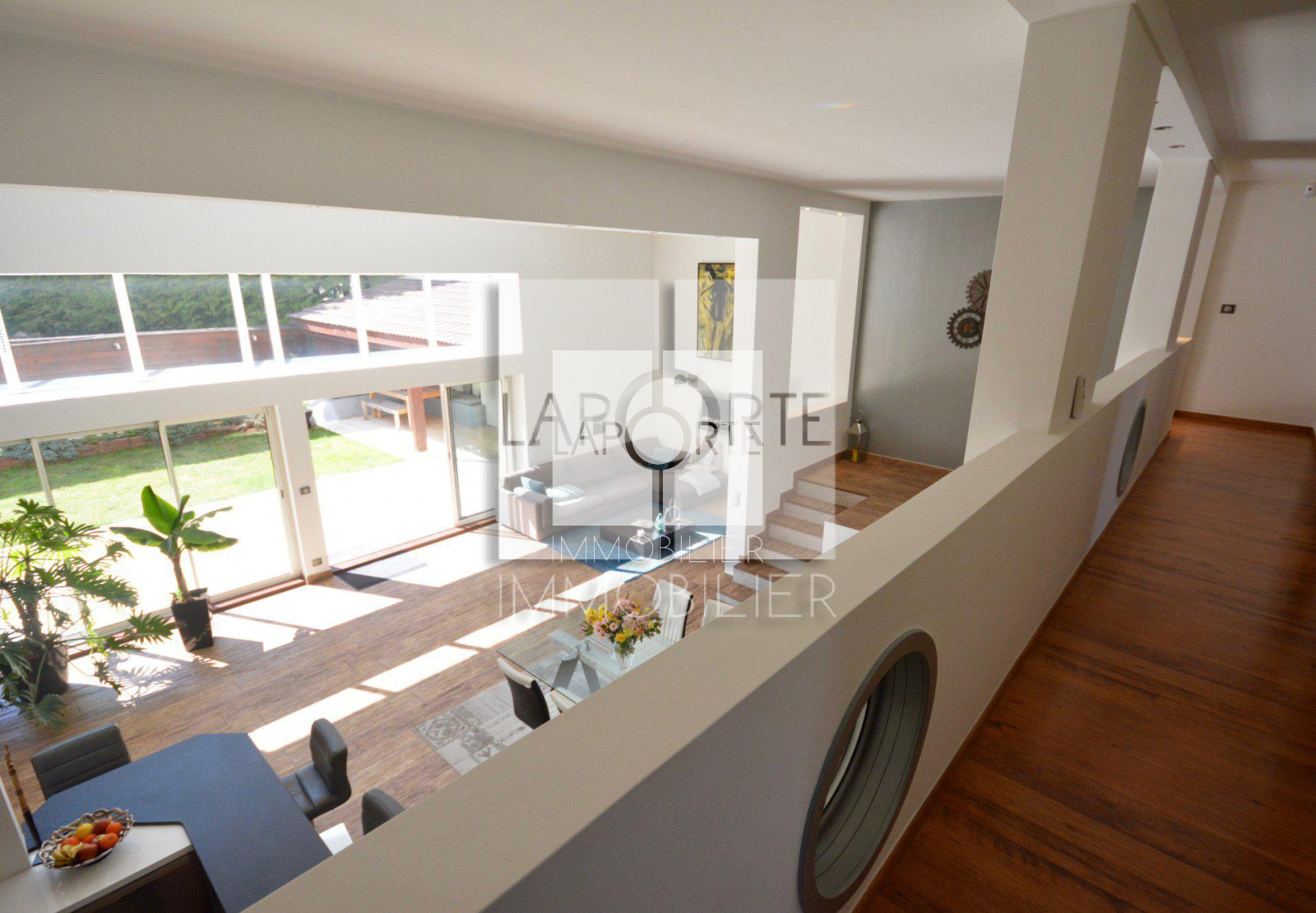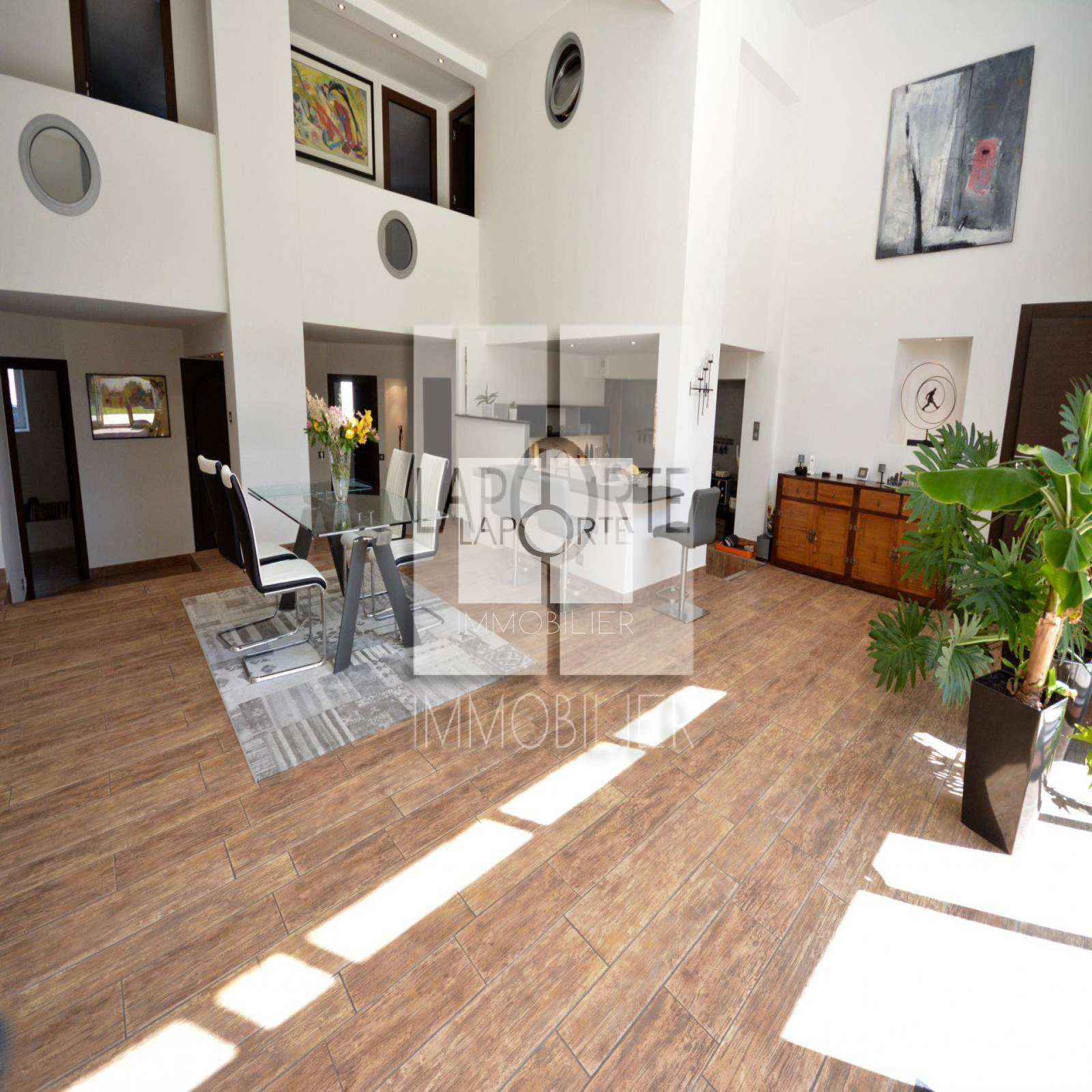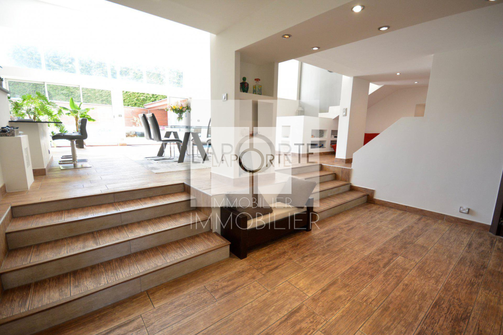 MI-MAISON / MI-APPARTEMENT T7 DUPLEX EN REZ DE JARDIN (233m2 de surface totale), un espace de vie de 64m2 avec des volumes exceptionnels (4,5m2 de hauteur sous plafond donnant sur un jardin . 4 chambres dont une au RDC. 2 salle de bains. Cuisine ouverte sur le séjour. Un grand garage (46m2) avec un accès direct. 2 places de parkings extérieures. Petite copropriété, pas de charges. Secteur calme. Accès facile autoroute (1500m). BIEN EXCEPTIONNEL