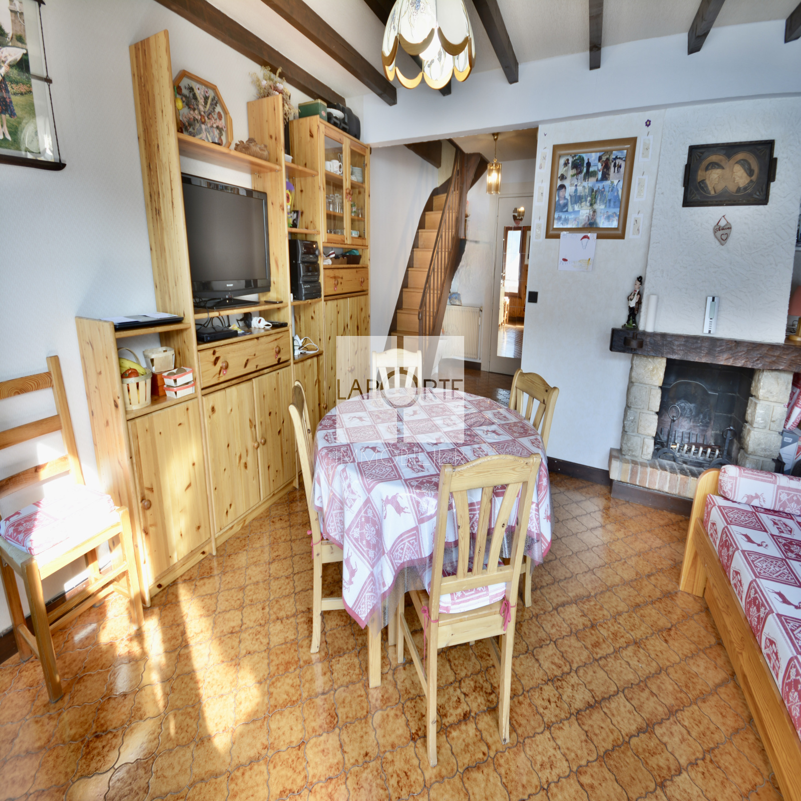 Appartement duplex de type 4 proposant une entrée, un WC suspendu séparé, une cuisine équipée, un séjour avec cheminée, à l'étage, un palier, 3 chambres, une salle de bains/WC, une douche