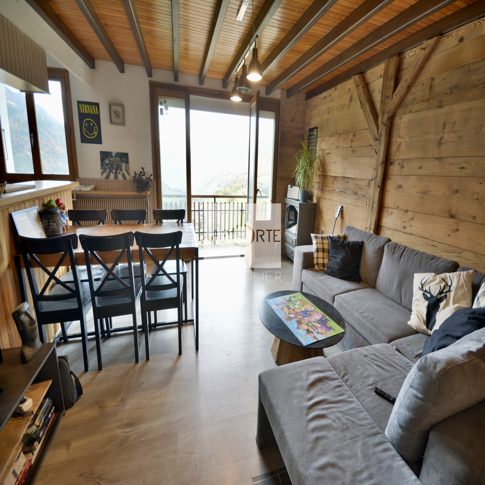 Découvrez ce T2 de 45 m², alliant charme montagnard et confort moderne, idéalement situé entre La Clusaz et Le Grand-Bornand, à seulement 2 minutes du centre de Saint-Jean-de-Sixt. Situé au dernier étage d'une petite copropriété, ce bien vous offre une vue panoramique exceptionnelle sur les montagnes et une intimité totale, étant le seul logement à ce niveau.