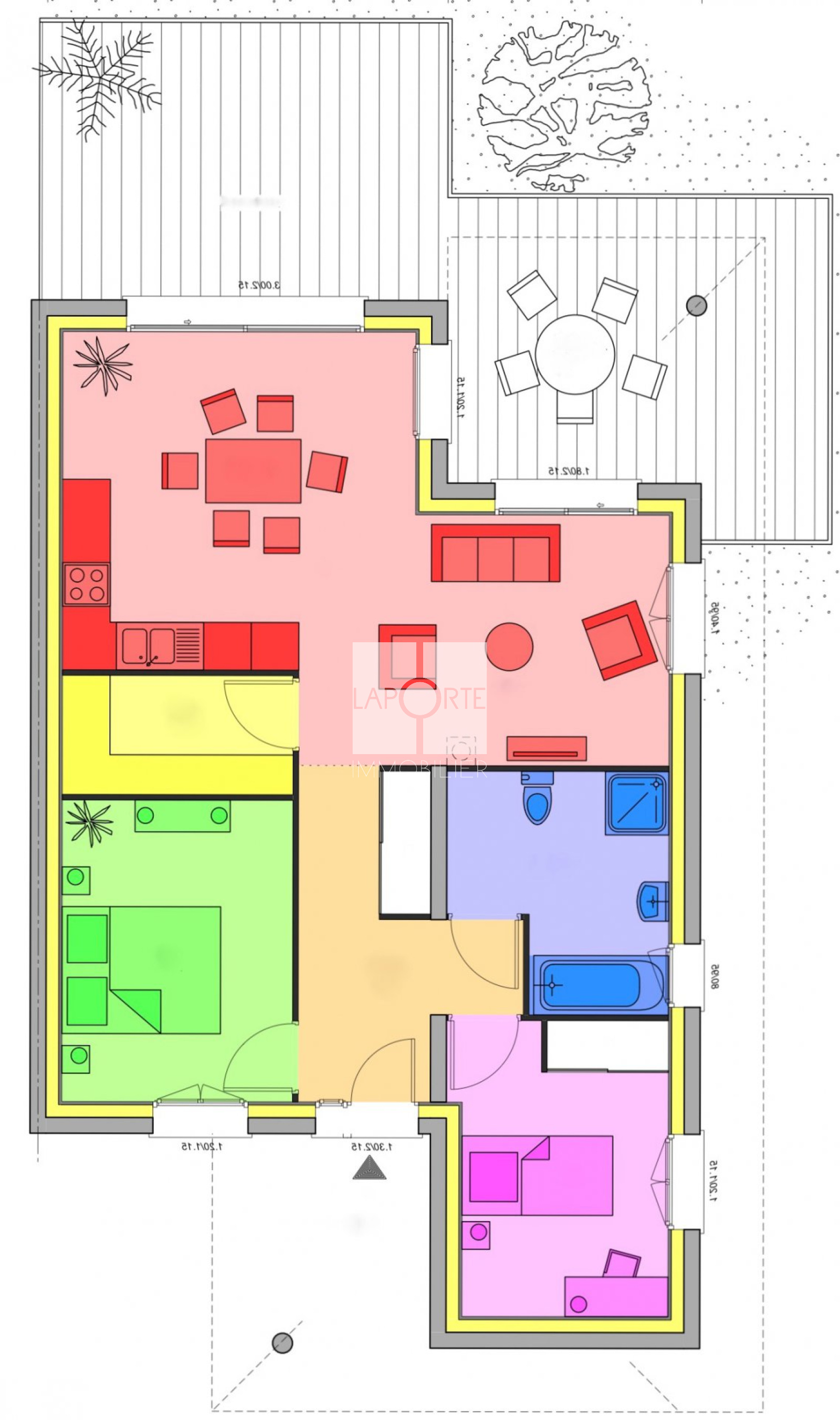 T3 de 72m2 avec salon donnant sur une terrasse et un jardin de 157m2, cuisine ouverte avec espace repas, 2 chambres, salle de bains avec douche et baignoire. Vendu avec 2 places de parking et un garage de 22m2 (avec rangement possible sous combles). Frais de notaire réduits. Résidence neuve de 3 logements. Remise des clefs prévue pour MAI 2018. Proximité piste cyclable et commerces.