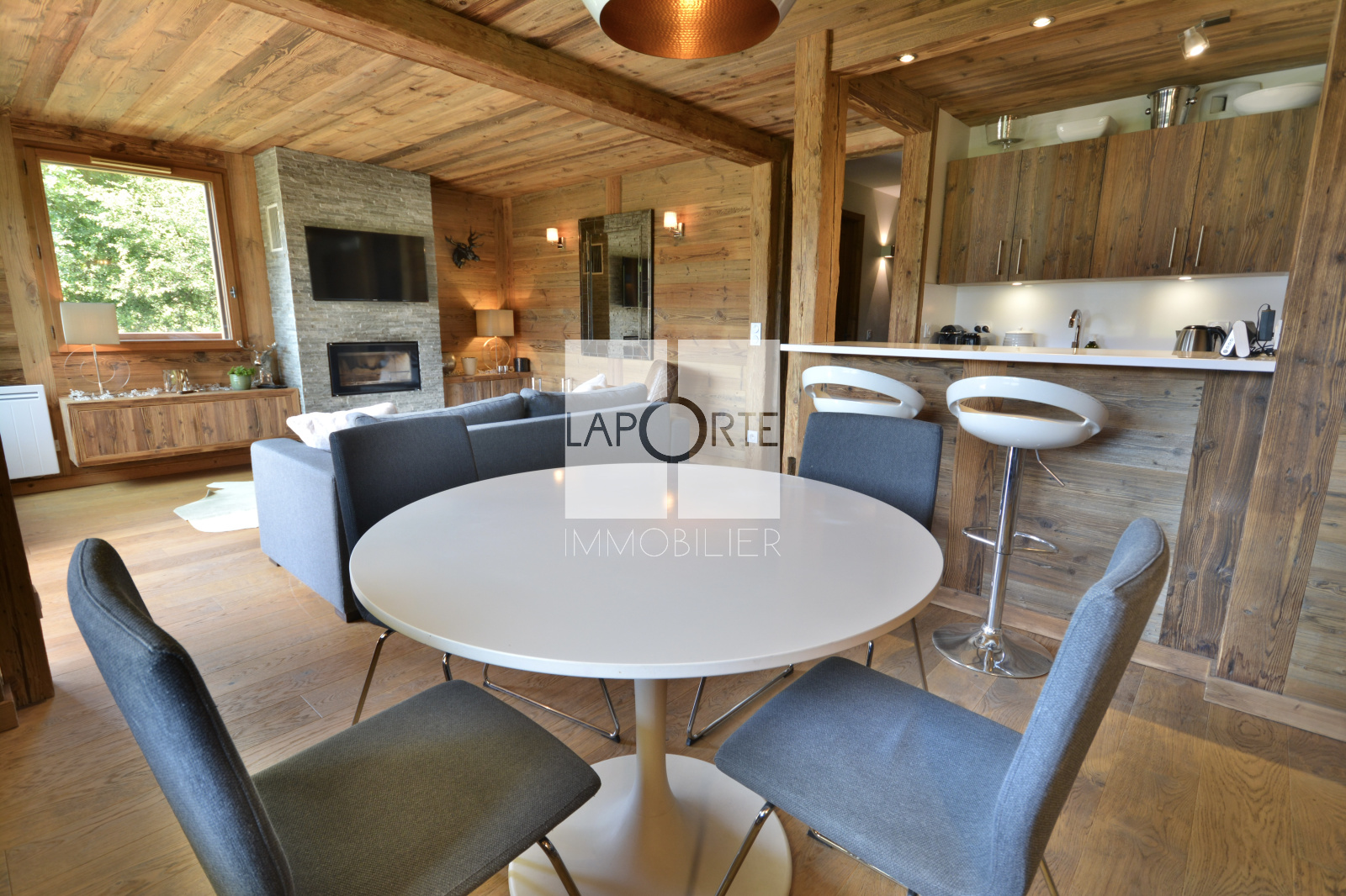 NOUVEAU et EXCLUSIF! Dans immeuble standing, magnifique appartement T4 amenagé avec un grand souci du détail et du confort. À deux pas des remontées du BOSSONNET (3 minutes du centre du village) avec une vue panoramique Sud-Ouest. L'appartement dispose de trois chambres dont une suite parentale avec salle de bains privative, une salle de douche, 2 WC, un salon/salle à manger avec une accès directe sur la terrasse. Cuisine toute équipée ouverte avec bar. Belle chéminée encastrée. Une buanderie. Un casier à skis. 2 garages.