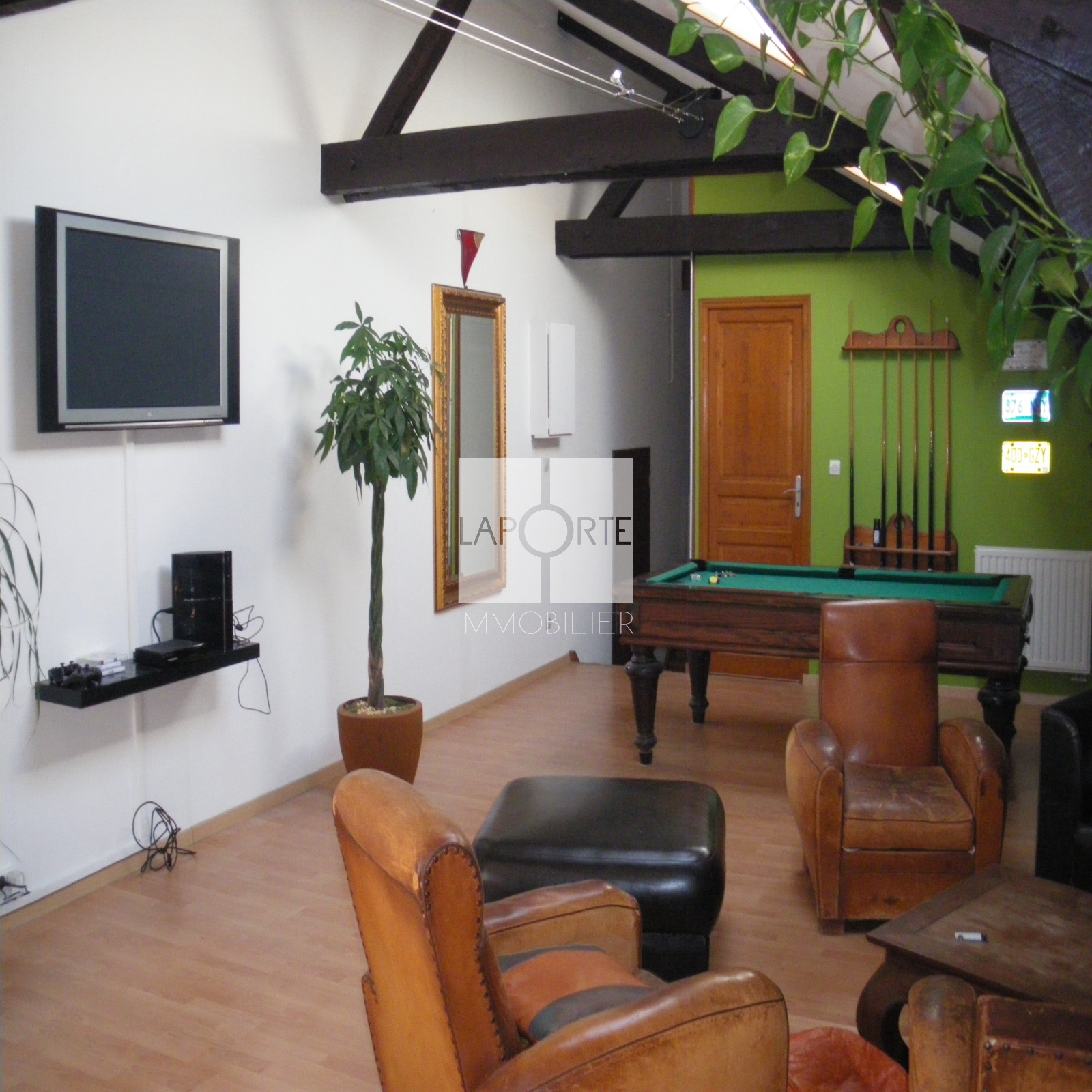 Appartement de type 3 + mezzanine d'une surface de 140m2 au sol proposant une entrée, un séjour/cuisine équipée de 65m2, 2 chambres, une mezzanine, une salle de bains avec douche et baignoire, un WC séparé
