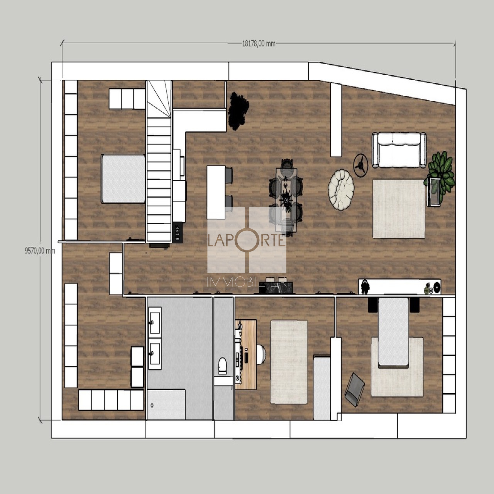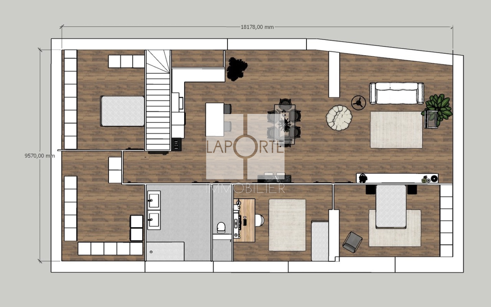 Avec ses 102m² environ il est possible d’y aménager un T4 ou de diviser pour créer un T3 et un T2.