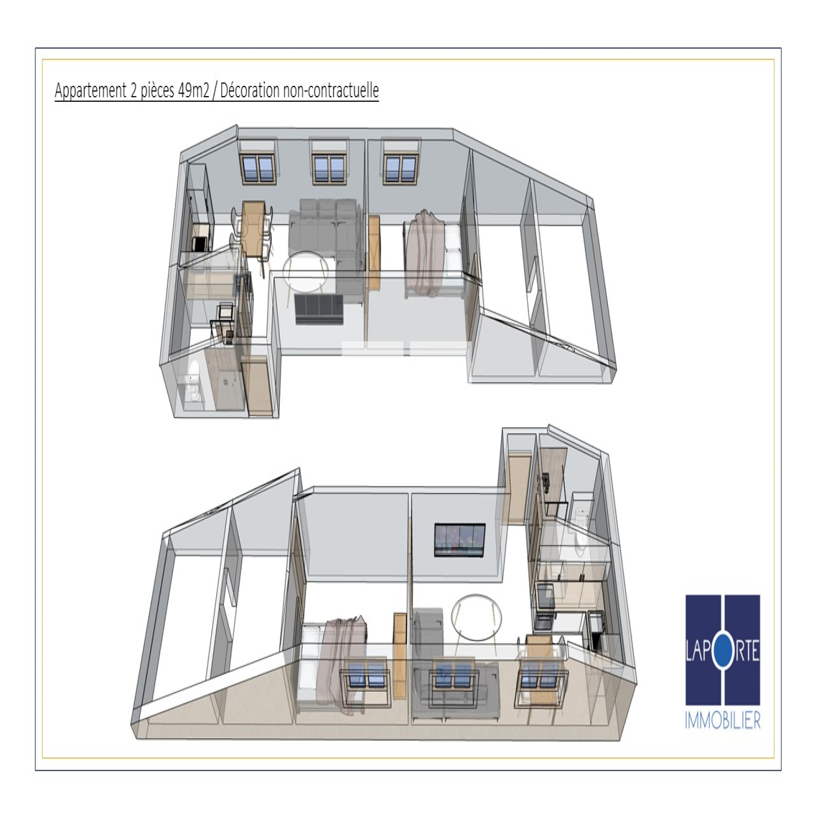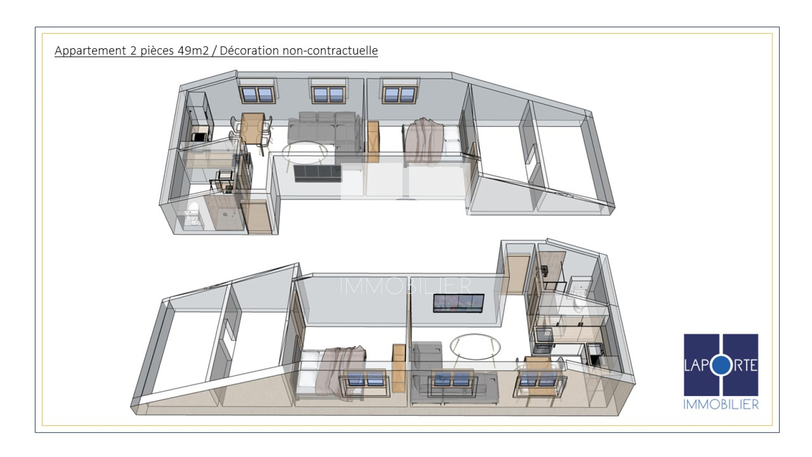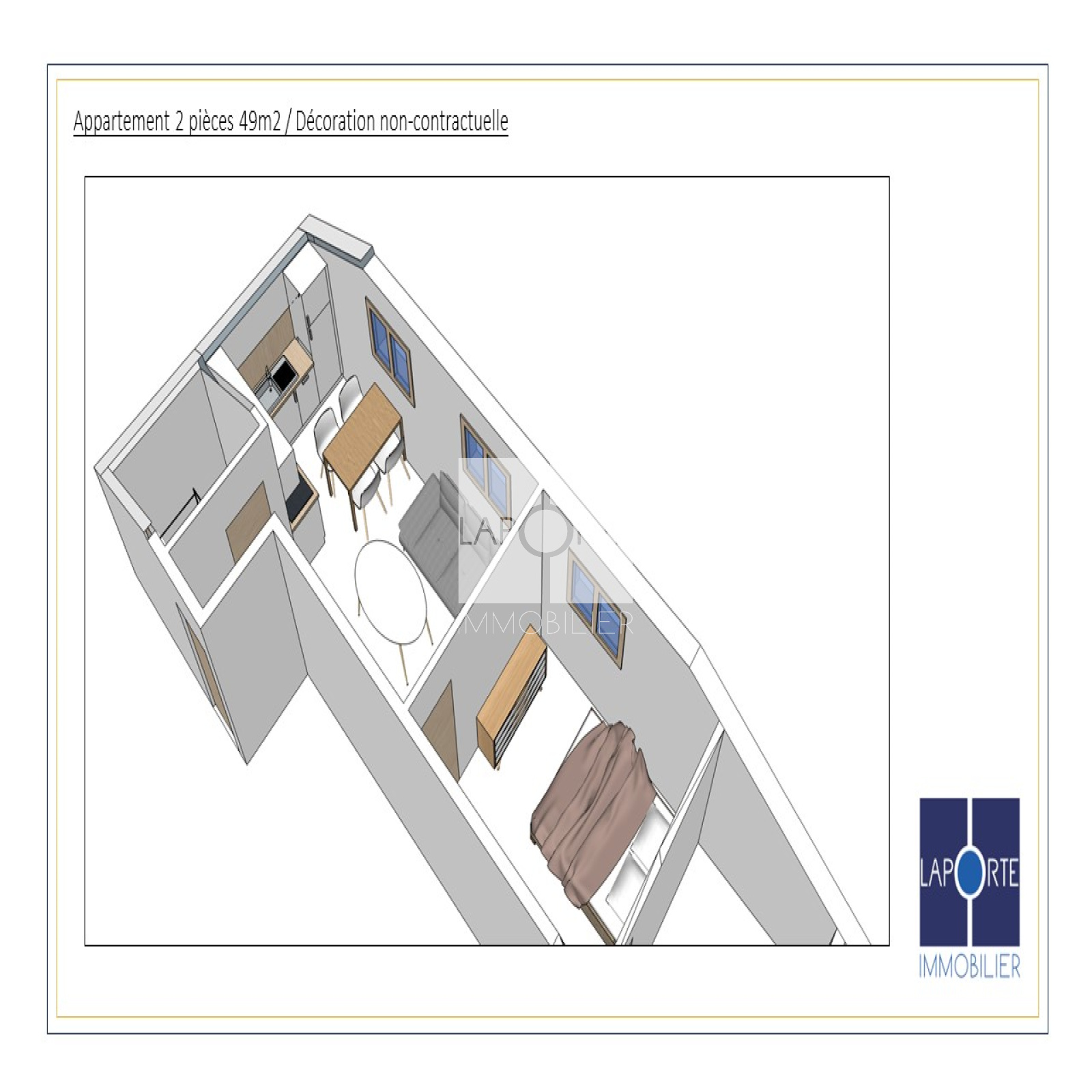 Appartement 2 pièces de 37m2 Carrez, 49m2 au sol.