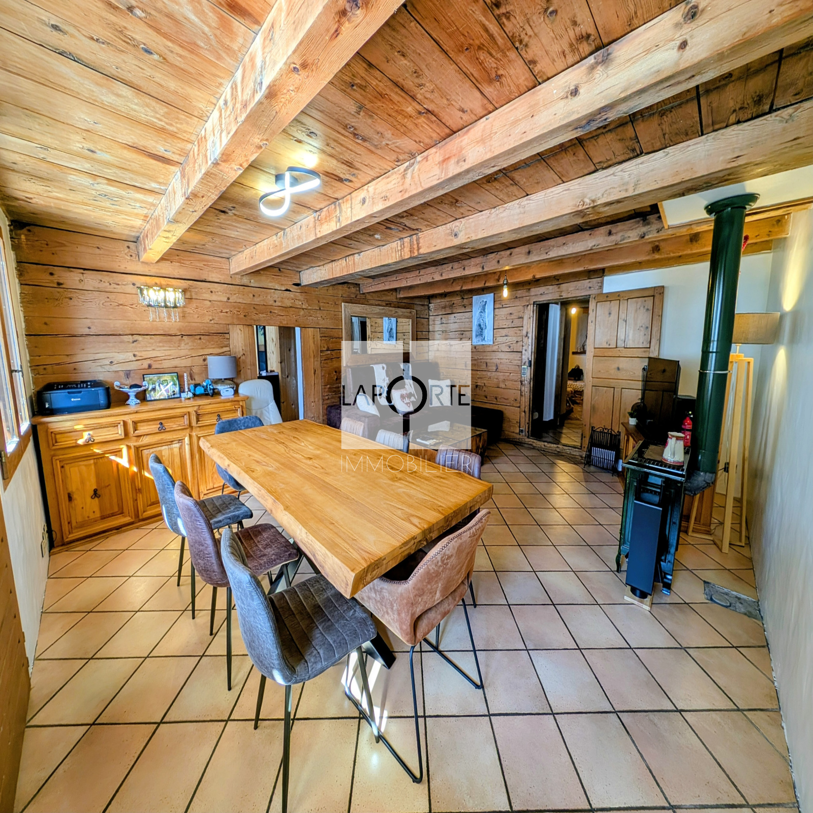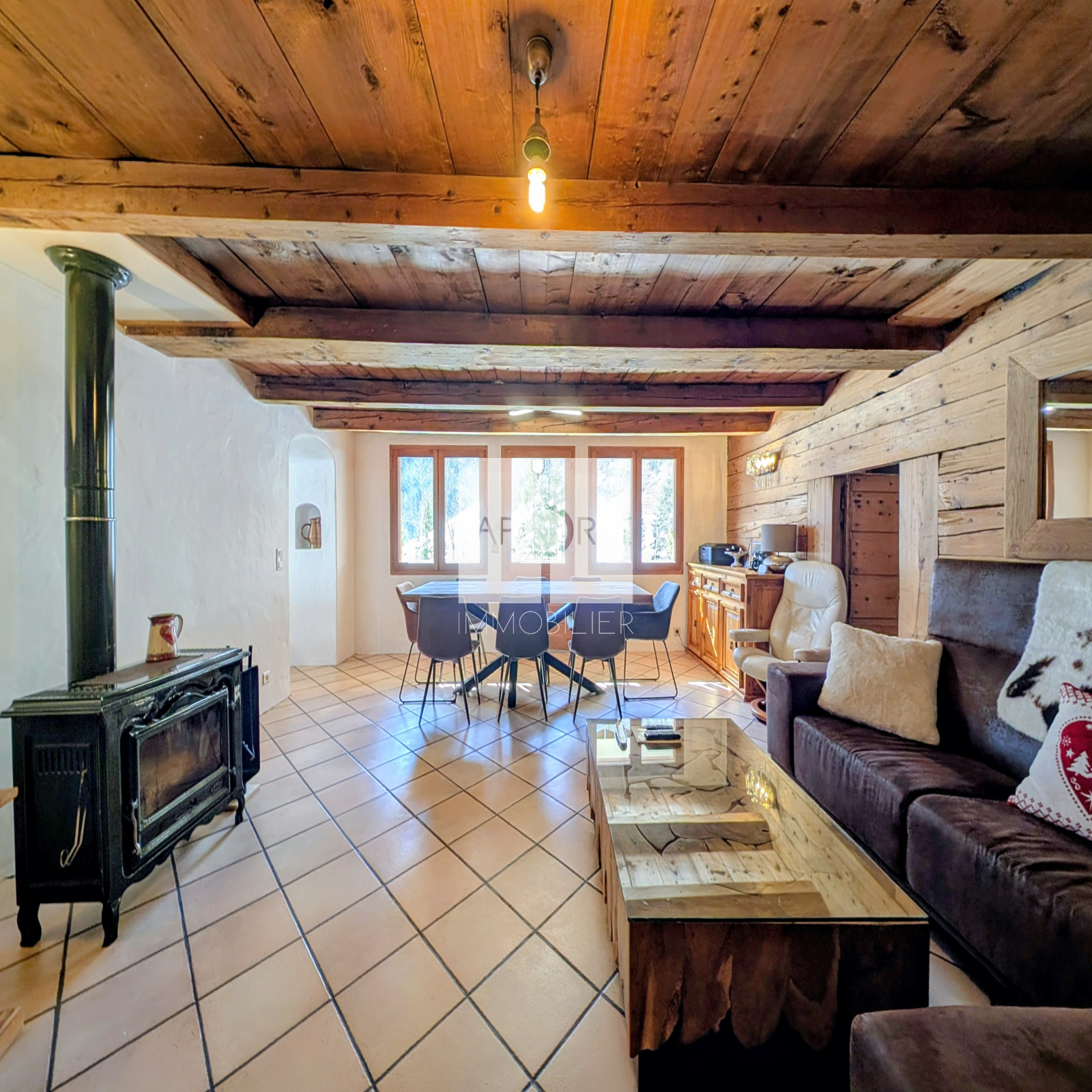 Cet appartement se distingue par des prestations haut de gamme et des aménagements intérieurs rénovés avec des matériaux nobles, typique savoyard.