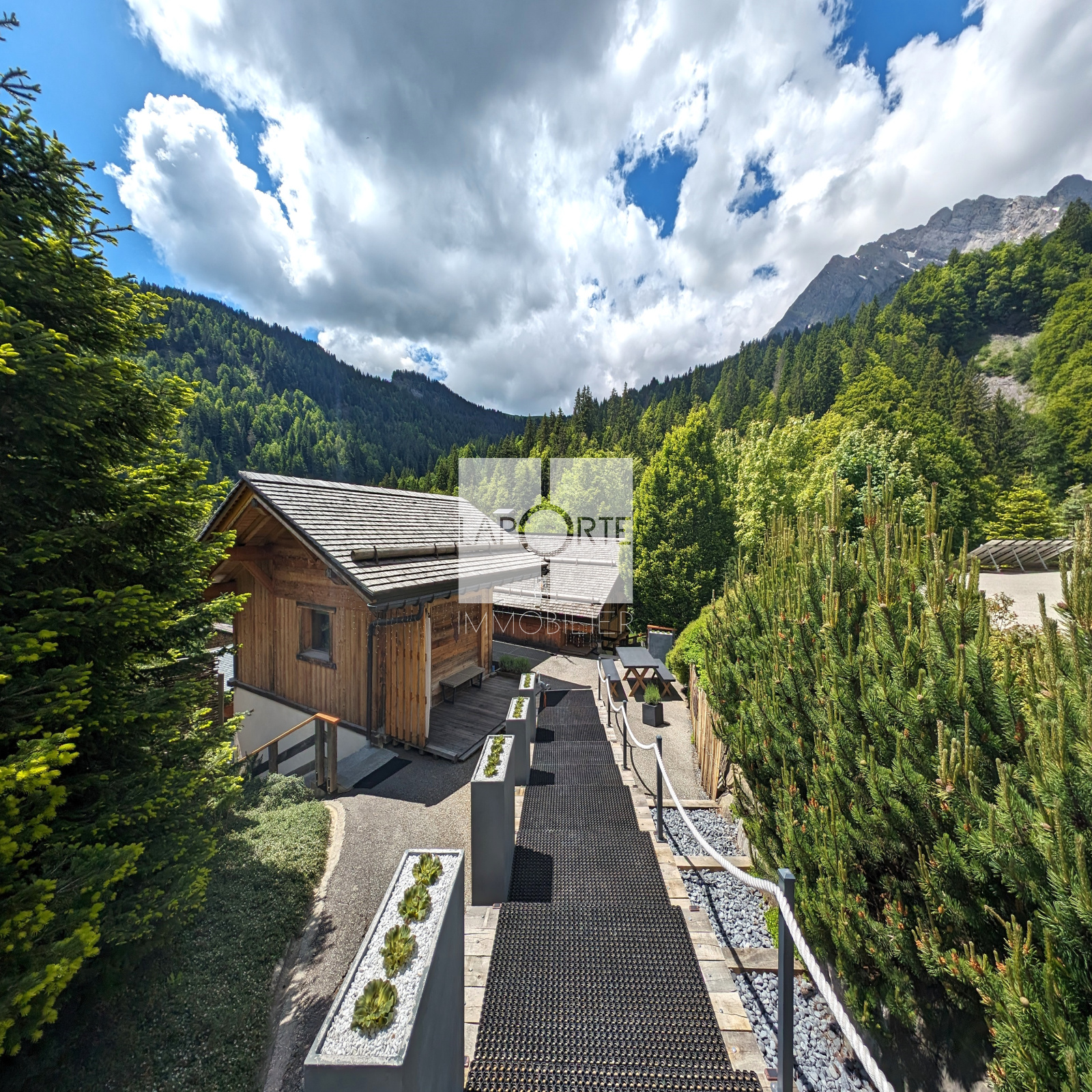 Propriété de Prestige comprenant 2 chalets indépendants meublés dont un en bail Emphytéotique, avec une pisicine à débordement, un vaste parking couvert et un mazot.