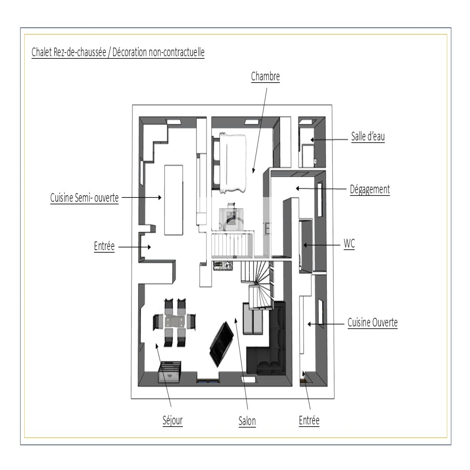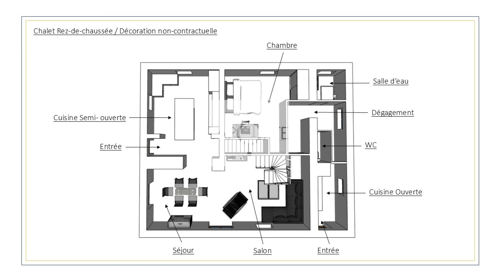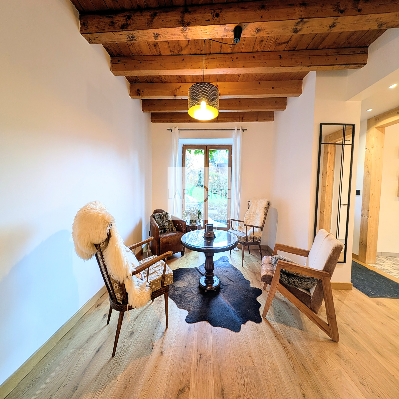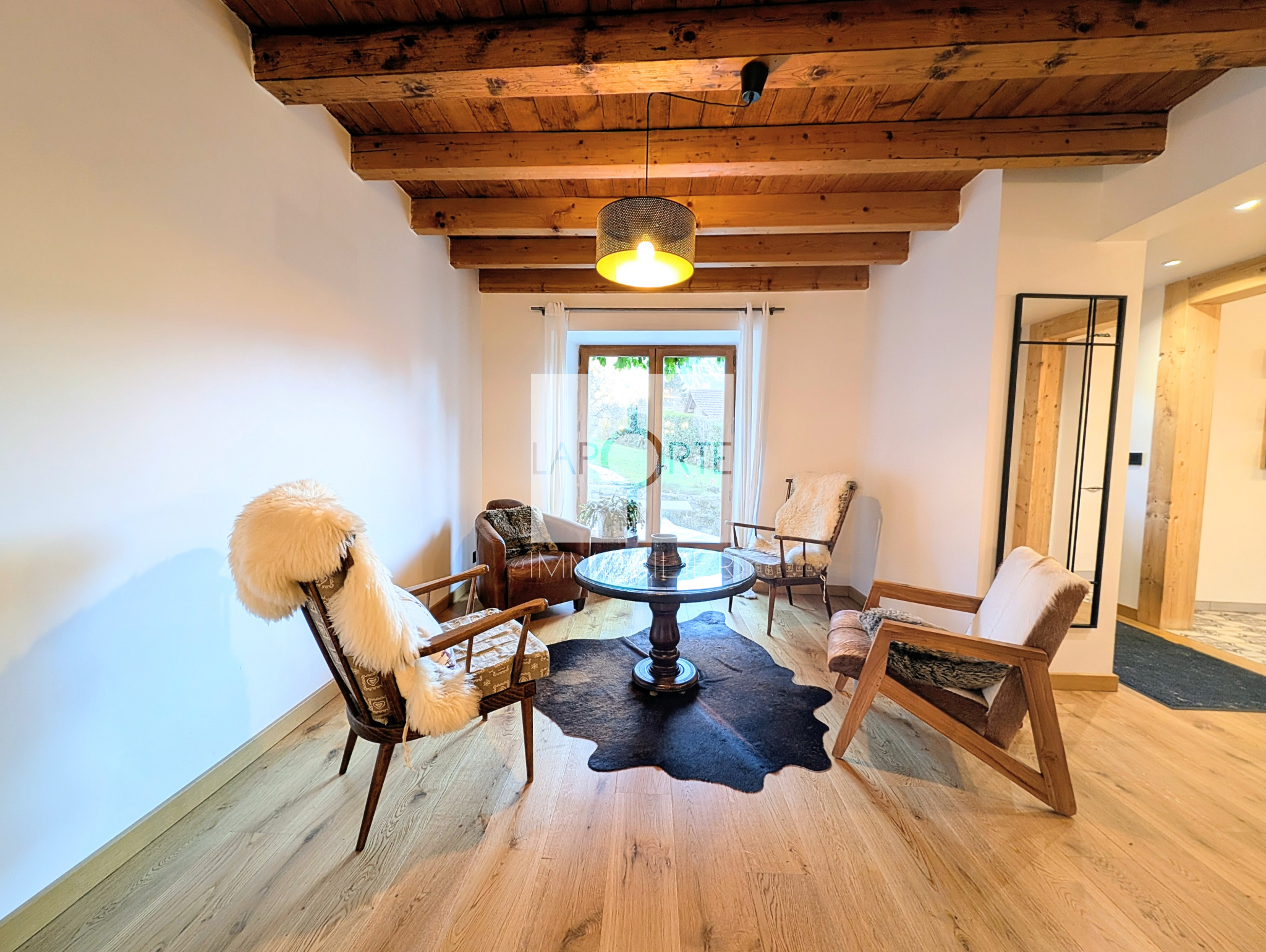 Ce chalet se distingue par des prestations haut de gamme et des aménagements intérieurs rénovés avec des matériaux nobles.